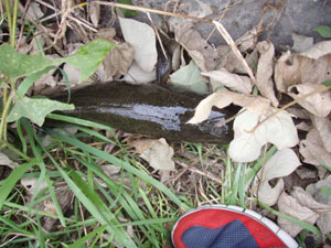 泥に半分埋まっており、その下にちょっとした隙間があります。