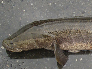むちゃくちゃ暴れて、上がってきたのはでっかい頭の雷魚君。