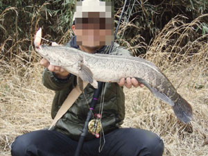 なんとかアワセが決まり、GG77で、初めての雷魚をゲットです! 3月25日 津山ライギョ