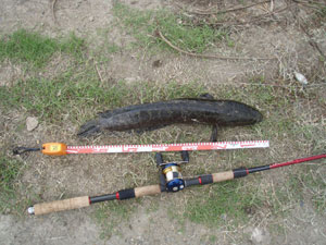 開始10分でドカーン!と出て、いきなり80cmのグッドコンディション雷魚ゲットですwヒレがピンシャン♪やっぱ秋は食わない分、コンディションがいいわ♪