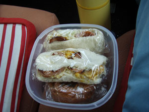 しばらく回っていると腹が減ってきたので自作弁当の朝食タイム。