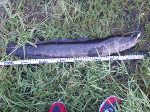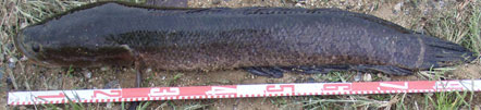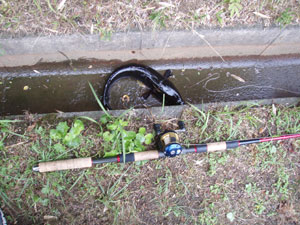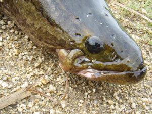 なんとかアシ際のポケットで一本ゲット。ところが、これが奇形雷魚。口のところがおかしくなってます。