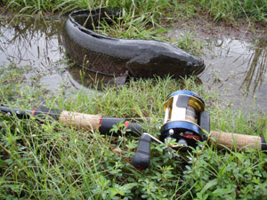 朝一、野池でイキナリ80cmをゲットw何度かばらし、移動。