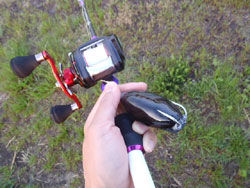 さらにダブルラッピングのおかげで、ギシギシとロッドがきしむこともないし、また、ビックシューターの7.1のハイギアがスラッグを楽々巻き取ってくれるし、ピッチングなんかも巻取りが早くてキャストミスをすばやく修正してくれています。