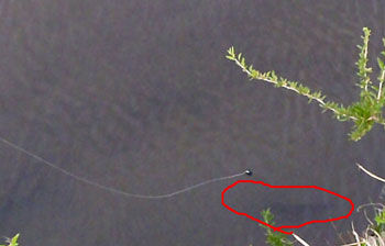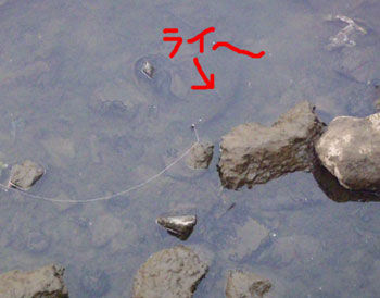 ドテに生えた芝周辺を探る作戦で、一発目キャストすると、