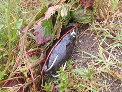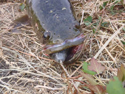 で、その後、怪しげなクリークのタマリを発見して見に行くと、なんとツガイの雷魚がいるじゃありませんか!?