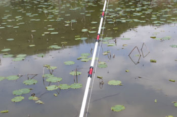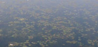 ヒシの新芽が中途半端に水中に伸びているような状態。