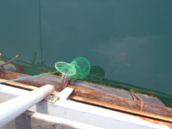 バスマンたちでした〜!正直、バスは見たことがないので、その旨伝えると、雷魚でも釣ろうかって感じで、細いナイロンラインでシバ周りを探り始めました。5,6人でしたが、そのうちの一人が雷魚をかけて、結構でかかったんですが、ランディングでラインブレイク