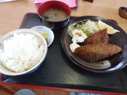 たいしてうもないうどん屋だもんで、かけうどんとメンチカツとチクワ!パワー充填完了!