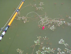 到着すると、ヒシ8割でかなりいい感じwベイトもバッチリいるし、時々雷魚のディスプレイとかもありますw