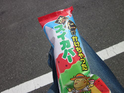 行く途中、あまりに暑いので、コンビニよって、スイカアイスを買ってみました。なんと練乳というか、杏仁豆腐付きに進化しちゅう!がしかし、食ってみると、練乳コーティングないほうがうまくないか?なんて思いましたw