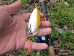 んがしかし、現実甘くなく、今日は夕マズメのナギがなくて、風が強くてコイツでは目的のポイントまで届かん!結局、スイベルハヤブサを投げ倒してみたんですけど、思い届かず、タイムアップ!