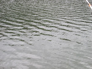 そのうちに、雨がパラパラとふってきて、でも風はないんで、いかにも釣れそうな感じで、カッパきて、待ちまくったんですけんど、ライギョの反応なし。