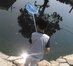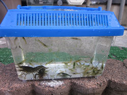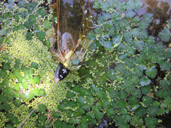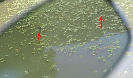 そこで、風の影響を考えて、カバーが多い池ほど影響が少ないので、とにかく、藻が既に生えきっとるような池へ移動することに。