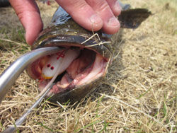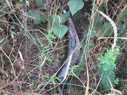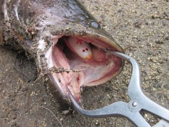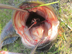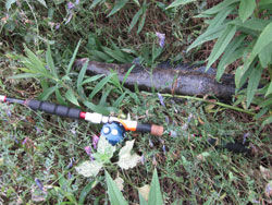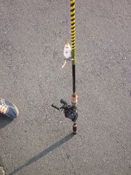 聞いてみると、にいやん、3日目なんですけど、アタリがゼロのようで、かなり辛い釣果ですわ(汗)こないだライギョかかったんよ〜つって、80UPのライギョをスマフォで見せてもらったんですけど、なんとガリガリ君・・・。苦労してこれ釣れたらショックやな〜〜〜・・・