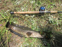 そんで、ウェーディングすると、目の前のパラヒシに70くらいのライギョがウロウロしてるのを発見。ソローっとハトを落としてみたら、ギューン!って付いて、バッフォーン!なんせ、1m先での捕食ですからね!迫力満点ですわ!ウェーディングはココがいいのよね〜!