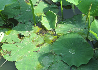 こら釣りにならんわ思って移動。続いての池は、山奥にあるイージーな小規模ハス池。ここは風の影響がすくなくて、釣りになりそうですw