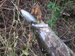 そんで、足元のブッシュ際をウロウロして雷魚を探すも、デカバスばっかで、雷魚のラの字もなし。