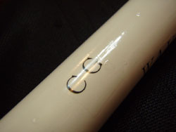 こうして、デカールのシミ問題は、案外深く追求する必要が出てきました。通常、黒いブランクに貼り付けたデカールだったら、たとい、黄ばんでいても気づかないのですが、明るい色を多用するワタシは、この問題をクリアしなければ致命的なのです。