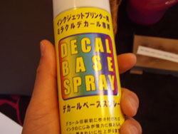 で、このデカールは、同じケイトレーディングのデカールベーススプレーを印刷前に吹き付けて印刷すると、よりキレイな印刷が出来るとのこと。だもんで、これも試してみました。