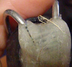 オモリがずれるトラブルが起こり、それがフッキング不可能な状態へとつながっていきます。これが、常日頃起こればまだ対策を立てようかという気になるんですが、一度チューニングすれば、当分は大丈夫。使い倒したって、1ヶ月2ヶ月はなんともないからだましだまし使って、それがここぞという一発を逃します。