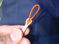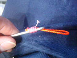折り返す時に、このような適当なチチワを用意します。抜き糸です。
