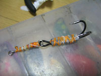 ハニカムフックをつけてみると、全く大きさがあわなかったので、ウィップラッシュのデッドスティングをつける事に決定しましたw