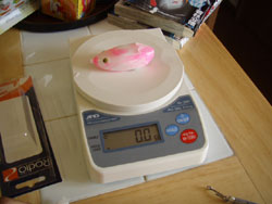 推測するに、フロッグの塩ビ素材は、ねずみ色のヤツで、熱に弱いので、釜ゆでで変質して柔らかくなってしまう。その代償として、ボディがゆがんでしまう。