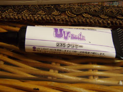 東邦UVレジンでうすく塗った後、UV照射機で硬化させます。