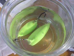 フックはラッチーの6/0。ウェイトは18g程度で垂直。
