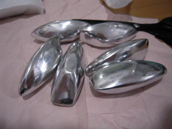 僕の電気炉は5個くらいしかカタが入らないんで、アルミの複製型を5個程度作るとして、なるべく安価にできる方法を探りました。