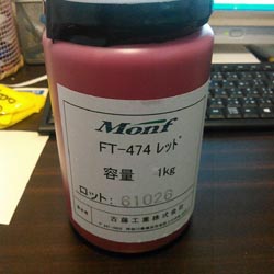 コバヤシに色々聞いてみたんですが、一般的には、着色されたゾルを20s単位で販売するのが一般的らしく、それらは、トナー(顔料)をクリアゾルに混ぜて作ったものらしいです。その際使われるトナーは顔料屋さんにコバゾールを出して、顔料屋さんで顔料をゾルに練り込み、ペースト状にしたものとのこと。荷姿は1s缶とのことでした。