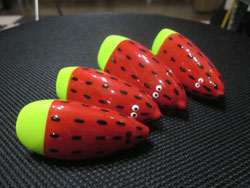 ようやくピンクも完成。ちょっと透けやすいんで、スイカとか、ツートンとかはできないと思いますが、単色としてはかなりいい冴えたピンクだと思います。雷魚マン受けもいいと思いますwよろしくです〜w