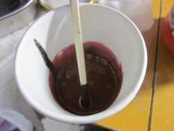 で、さすが、トナーそのまんまだけあって、色が濃くて、なっかなかのきません。思うに、テスト段階では、プラスプーンを使って使い捨てにしたほうが掃除の手間がいらないんで、よさそうです。