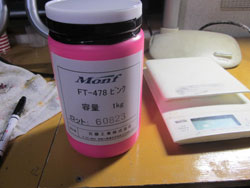 どうも、ゾルの調整をするときに、白の配合が若干バラつくんですけど、そのバラつきで、ピンクの発色がえらい変わってきます。