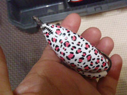ヒョウ柄のペイントです!ピンクを入れたというのがいいですね!大阪のおばちゃんカラーですっw話きいてると、点々するだけなんで意外に簡単にできますよ〜!とのことだったんで、塩ビゾルでも出来そうな感じですw今度挑戦してみようっとw
