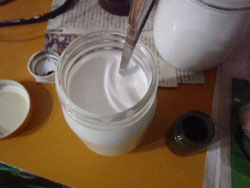 さらに、ディップ成形では、成形用の瓶をほったらかしておくとゾルが下に沈んで可塑剤が上にいってしまうので、成形前に