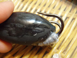 それとアイの抜き穴ですが、アイの抜き穴は、最初は穴が空いていません。樹脂成形をした後に穴を開けていると思われます。ですが、これもどうせチューニングするので、ニードルで穴空ければ良い話で、最初から穴を空ける必要はなく、ここでも製造原価を下げる努力をして欲しいと思う次第です。(フロッグについて思うことを参照)