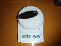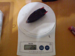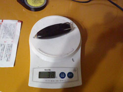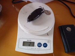 フルボトムに193g。見た感じ、少し浮力が足りないような気がするので、動きが悪ければ27g程度にしてリチューニングしたいと思います。今までボンジュニの対抗馬がなくて困っていましたが、針のサイズといい、関脇が対ボンジュニクラスのフロッグになりそうです♪