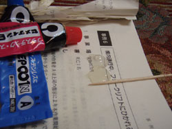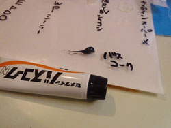 でもってコレがやりこさの比較。まずウィップラッシュのシーラーはパンドーと全く一緒。ヤセがごつくて硬くてプニプニ感は全くありません。ちなみに乾燥時間はパンドーのほうがはやいのでシーリングがやりよいです。やはりフロッグのシーリング剤はパンドーの勝ちだと思います。で、続いてセメダインスーパーX。痩せが少なく、プニプニ感はかなり固めですが、若干の弾力性はあります。ちなみに同じような接着剤、