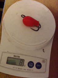 そんでもってウェイト調整しようとして、浮き具合を見てみれば、なんと、何もつけないで垂直浮き。このとき8gです。これ、ウェイトつけたら沈むわ。