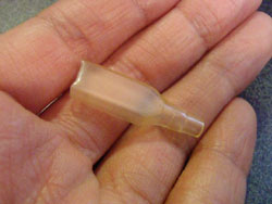 チクビ。昔、トリビアの種で、マン点ヘェ〜をもらっていたネタ。チクビとは、スポイトの先につけるやつ!こいつが中空弾性体なのである!赤いのがラテックスで、白いのがシリコン。