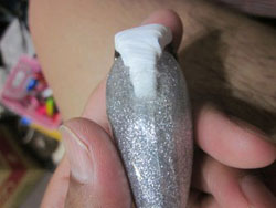アイを作ります。たまにオオノのマンズアイがポン付けできる時があります。ディップ成形は外形寸法がまちまちなので、このアイならいける!というのがなくて、あくまで目安です。