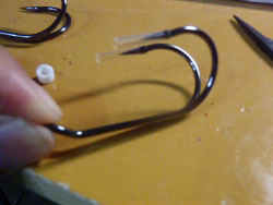 んで、シンカーが収まりやすいようにフックホールを切ってフィッティング。