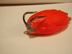がしかし、成形に失敗し、硬すぎで凹まないフロッグになってしまいました。