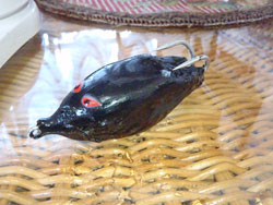 初めての自作フロッグ雷魚に感極まりましたが、いかんせんマテリアルが悪い。作り方が悪い。結局、戦力にならずサヨウナラ。
