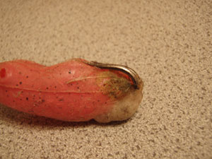 クリークでパーフェクトフロッグと思われがちなスナプルも、これはちょっと・・・。と気づいた弱点を一つ。それが軽さ。軽すぎるので雷魚用ベイトリールに合いません。13g前後のウェイトでは、でかいベイトリールの回転性能とマッチしません。雷魚用だったら、最低でも16gは欲しいところ。軽すぎるため、キャスト時にラインをフリーにした瞬間とフロッグが飛び始める瞬間に大きなタイムラグが出ます。そのため、うまいことキャスティングするには、スプールから指を離すタイミングがピーキーになります。硬いロッドだったら、さらに顕著に分かります。大体が、左に向かって飛んで行く傾向があるんじゃないでしょうか。これは静止摩擦の関係なのかな?兎に角、フォルムが小さいことが、雷魚にとっての食いやすさなんでメリットでもあるんですが、逆にそれがキャストのしにくさというデメリットにもつながっています。見え雷魚相手のクリーク戦では、キャスト精度は命取り。詳しくは「水路の鉄人」参照。今の大きさよりも少し大きめで、16g背負えるボディ。これが欲しいところです。