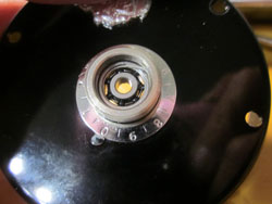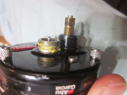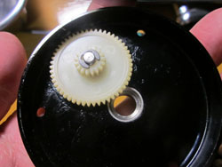 この時点で、メインギアとピニオンギアにグリスをタップリと塗ります。オールドアブ、ギアの歯が浅くてスグになめそうです。現行アブのほうがギアが深くていいと思います。