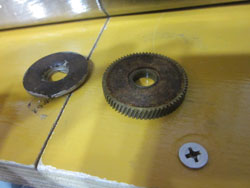 で、メインギア裏側はゴムのリングがやや固着していましたが、コレはマイナスドライバで外れました。やっぱ年式が古いんで、消耗パーツは終わってますな〜。
