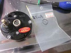 アレッ!?と思ったのがゴムのOリングで、現行品はここにOリングが入っているはずなんですが、入っておらず、純正のグリスが塗られていました。中古なんで、欠品している可能性もあり、組み上げ時に別のOリングを入れてみることにします。